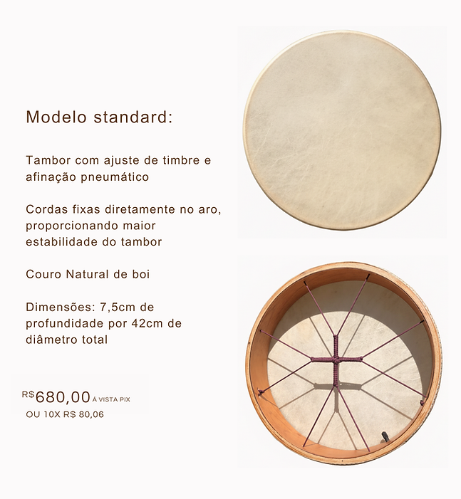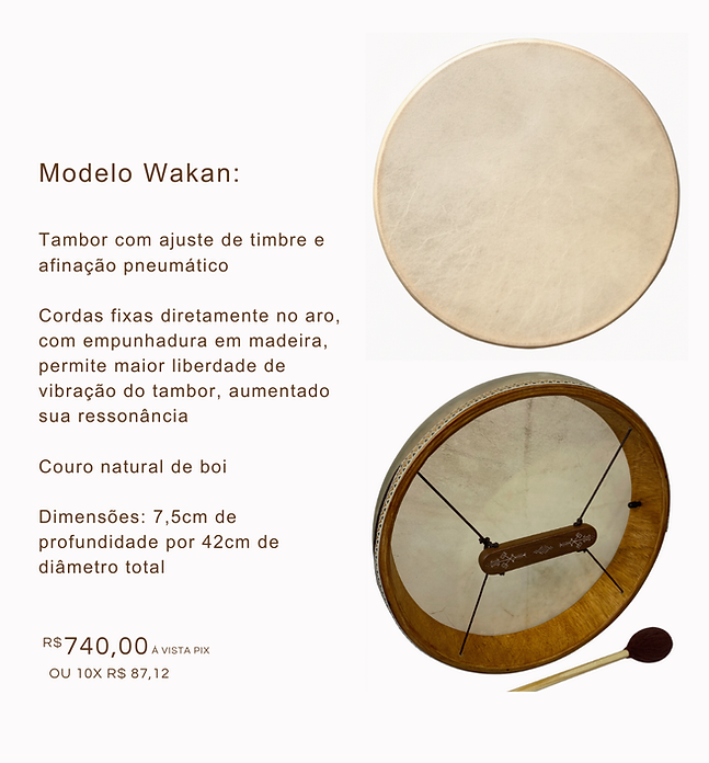 O Native Frame Drum representa a união entre tradição e inovação. Ele combina o tambor Lakota nativo-americano, com o frame drum, instrumento ancestral presente em culturas da Mesopotâmia. Esta fusão cria um instrumento único, que preserva a essência cerimonial do Lakota e incorpora a versatilidade sonora e a precisão de afinação modernas do frame drum.”